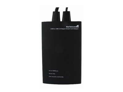 Turn any laptop into a console for headless servers, PCs, ATMs, kiosks and more. The NOTECONS01 KVM Console to USB 2.0 Portable Laptop Crash Cart Adapter turns your notebook or netbook into a portable server crashcart, eliminating the need to lug around a large, heavy and awkward video screen, keyboard, and mouse. This adapter delivers the VGA stream from any host computer to a laptop and emulates the laptop mouse and keyboard outputs for simple access and control of connected servers, PCs or other "headless" devices.