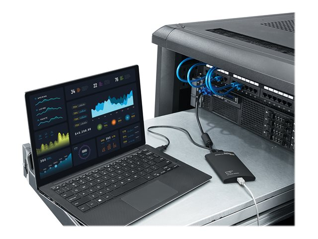 With portability for the mobile administrator or repair technician in mind, this USB-powered adapter features a small-footprint design that requires no additional accessories to connect to most servers, and requires no server-side software installation. Plus, the pocket-sized adapter draws its power from the server-side USB connections, allowing the laptop/netbook to last longer without consuming battery power.
