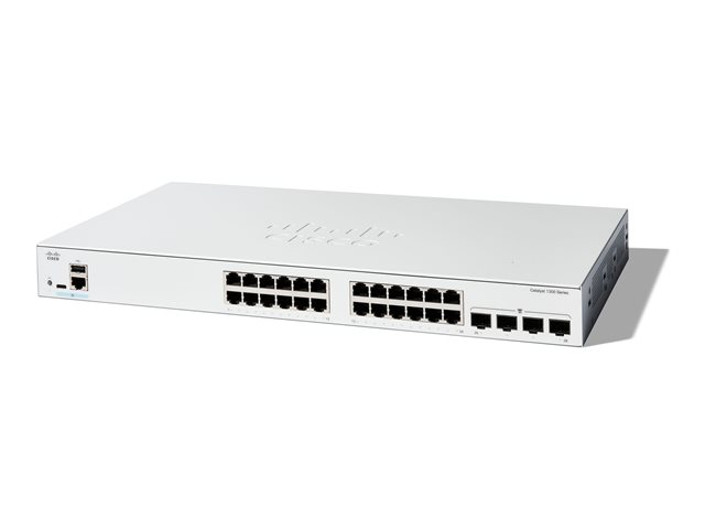 | Grensesnitt | 24 x 1000Base-T RJ-45 4 x 1000Base-X SFP 1 x konsoll RJ-45 1 x USB-C konsoll |