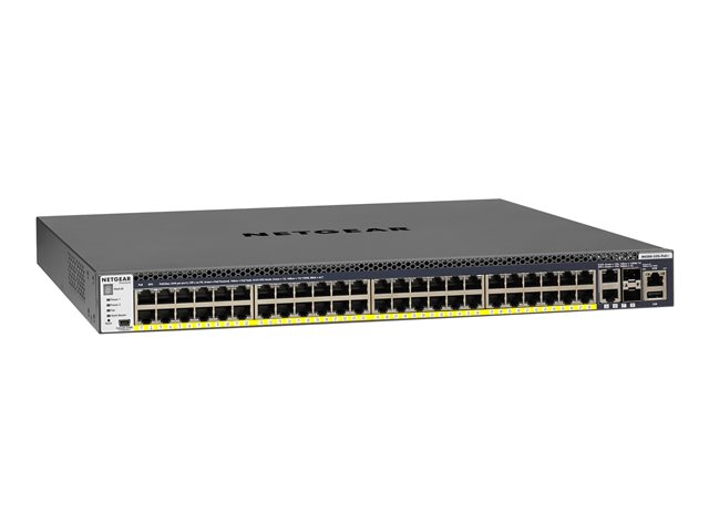 - The M4300-52G-PoE+ provides 48 Gigabit PoE+ ports with 2 10GBASE-T and 2 10GBASE-X SFP+ uplink connectivity