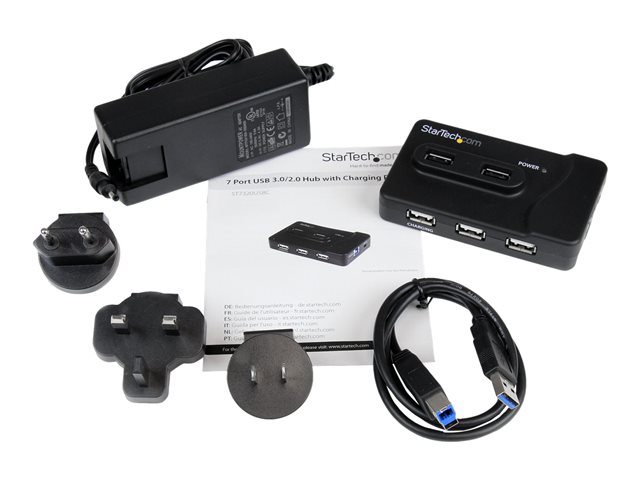 StarTech.com 7 Port USB Hub - 2 x USB 3A, 4 x USB 2A, 1 x Dedicated Charging Port - Multi Port Powered USB Hub with 20W Power Adapter (ST7320USBC) - Hub - 2 x SuperSpeed USB 3.0 + 4 x USB 2.0 - stasjonær - for P/N: MSDREADU3CA, SDMSDRWU3AC, USB312SAT3CB, USB315CB2M, USBLTM1MBK, USBLTM1MWH