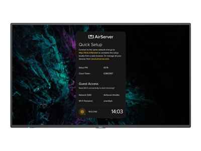 The MultiSync ME/M series AirServer models provide a sleek combination of intuitive screen sharing with professional display technology for meeting rooms and huddle spaces.