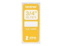 Denne originale Brother CZ1003 taperullen lar deg skrive ut etiketter i fullfarge og egner seg for et bredt spekter av merkeoppgaver. Taperullen i løpende lengde er 19 mm i bred og 5 meter lang, og kan brukes på kontoret eller hjemme for å identifisere filer, bokser, hyller, personlige eiendeler eller andre viktige gjenstander.