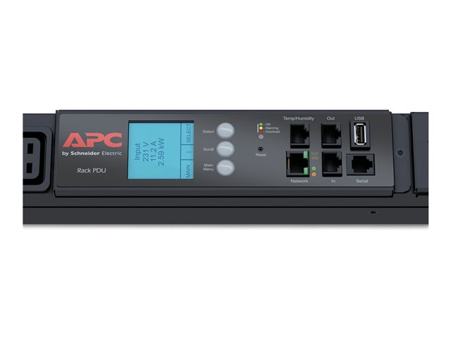 APC Metered Rack Power Distribution Units (PDUs) provide active metering to enable energy optimization and circuit protection. User-defined alarm thresholds mitigate risk with real-time local and remote alerts to warn of potential circuit overloads. Metered Rack PDUs provide power utilization data to allow Data Center Managers to make informed decisions on load balancing and right sizing IT environments to lower total cost of ownership. Users can access and configure Metered Rack PDUs through secure Web, SNMP, or Telnet Interfaces which are complimented by APC Centralized Management platforms using StruxureWare Data Center Expert, Operations, Capacity, and Energy Efficiency. New AP8000 series Metered Rack PDUs include real power monitoring, a temperature/humidity sensor port, locking IEC receptacles, and ultra-low profile circuit breakers.