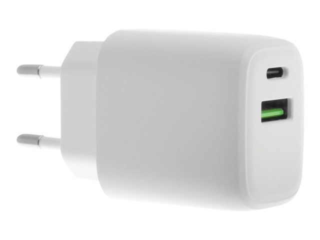 Insmat - Strømadapter - 30 watt - 3 A - PD 3.0, QC 3.0 - 2 utgangskontakter (USB, 24 pin USB-C)