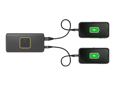 OtterBox - Trådløs nødlader - 10000 mAh - 3 A - QC 2.0, QC 3.0, Apple Fast Charge, Huawei Fast Charge, PD 2.0, PD 3.0, AFC, SFCP, PE 1.1+, PE 2.0+, USB BC 1.2 - 2 utgangskontakter (24 pin USB-C, USB) - på kabel: USB-C - svart