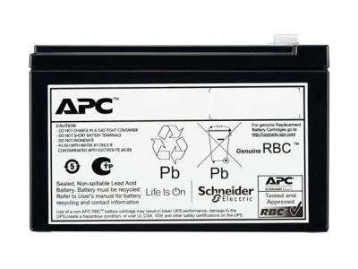 The APC UPS battery is a robust power solution designed to support critical systems with reliability and safety. With a 9 Ah capacity and spill-proof design, it's built to provide an uninterrupted power supply in the event of an outage. The battery's valve regulated lead-acid (VRLA) technology ensures efficient operation, while its ability to function across a broad temperature range from 0°C to 40°C and in varying humidity levels makes it versatile for any setting. Compliance with CB, EU RoHS, Green Premium, and REACH standards, along with a mercury-free build, reflects APC's dedication to quality and environmental responsibility. Whether for home or business use, this UPS battery offers the assurance of performance and sustainability.