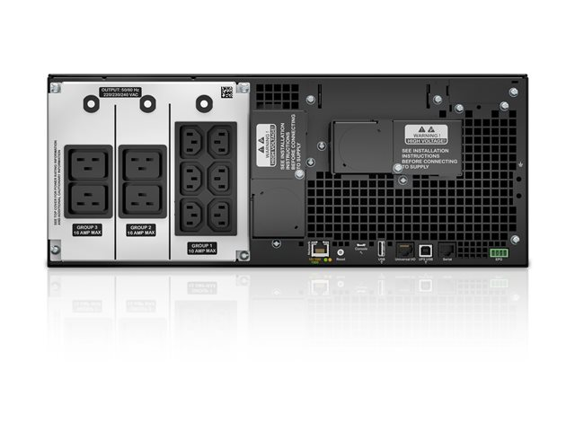 Equipped with an LCD display and audible alarms, the UPS keeps you informed of its status and any critical power issues. The inclusion of Ethernet 10/100, USB, and serial management interfaces, along with an emergency power off (EPO) feature, provides flexible and comprehensive control options. The APC Smart-UPS SRT 6000VA RM operates within a broad temperature and humidity range, ensuring its durability and reliability in a variety of operating environments. Compliance with IP20, REACH, and RoHS standards further demonstrates its commitment to safety and environmental sustainability.
