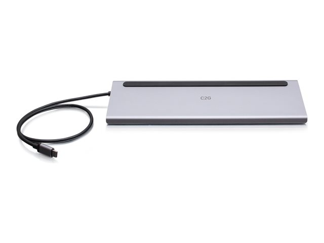 C2G USB-C 10-in-1 Triple Display Docking Station with HDMI, DisplayPort, VGA, Ethernet, USB, SD Card Reader, 3.5mm Audio and Power Delivery up to 100W - 4K 30Hz - Dokkingstasjon - USB-C - HDMI, DP, VGA - 1GbE