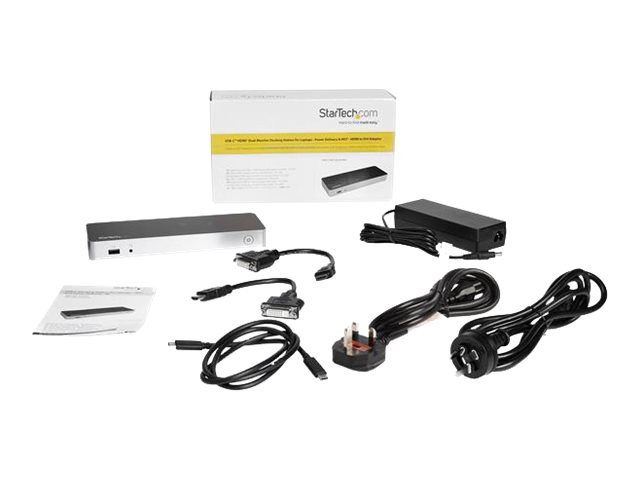 StarTech.com Dual Monitor USB C Docking Station with 60W Power Delivery for Windows Laptops, USB C to HDMI / DVI Dock, USB 3.1 Gen 1 Type C Dock with Charging, Thunderbolt 3 Compatible - 5-Port USB 3.0 Hub (MST30C2HHPDU) - Dokkingstasjon - USB-C / Thunderbolt 3 - 2 x HDMI - 1GbE - 60 watt MST30C2HHPDU