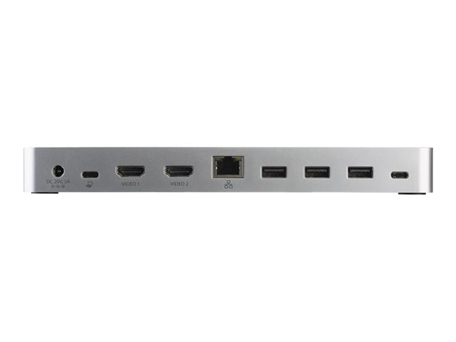 This USB Type-C docking station gives you five USB 3.0 ports (1x USB-C and 4x USB-A including 1x Fast-Charge), a Gigabit Ethernet port (PXE Boot support), plus audio and microphone connections.