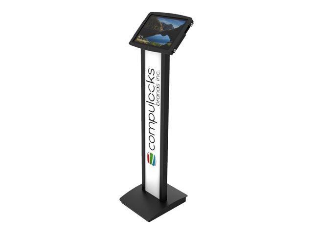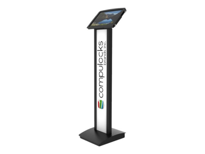 Our BrandMe floor stand allows you to utilize a panel for branding, call to action or custom design to bring attention to your interactive display or kiosk. The tilting mount allows the iPad enclosure to be set in either portrait or landscape mode and the stand base offers additional security features, securing the power source and bolting the unit to the floor.