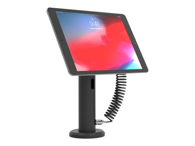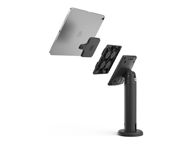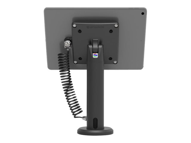 Bring flexibility to your business and checkout process with this unique tablet solution. Securely dock any tablet to an elegant pole stand while being able to freely remove it and benefit from extra mobility and in-store efficiency. Dock and undock your tablet in a snap! Energize the shopping experience with exciting customer-staff interactions and generate upsells with additional product information and personalized suggestions. The slim and strong Universal Tablet Magnetic Mount combines an adhesive metal plate and a proprietary design VESA magnetic plate on a Rise pole stand. The adhesive metal plate can be easily added to the back of any tablet brand and size. It includes a cable lock slot to keep the tablet safe when removed from its base. Its stylish design makes it discreet when the tablet is used off stand, and does not interfere with the user's experience. This extra mobility makes the stand ADA (Americans with Disabilities Act) compliant by facilitating interactivity and access to the tablet by any person with disabilities. The VESA magnetic plate has 4 heavy duty magnets and a special design allowing it to perfectly display the tablet both in portrait and landscape modes. The strong materials are designed to be used even in high traffic venues making the installation durable for intensive daily use and unlimited docking/undocking. The Rise pole stand has wire through cut-outs for clean cable management and a screen tilting feature for maximize customer engagement. The Dual head coiled cable is a must to secure the tablet to the stand for hassle-free use, keeping all excess cabling tightly wound. Made of slim galvanized steel, it has low-profile 180-degree rotating cable connections that move freely while the tablet is manipulated by the user for a smooth experience, while the 180-degree rotating T-bar head locks make it easier to lock and unlock. In environments such as retail stores, trade shows or restaurants, the tablet can be unlocked and stored safely or placed in a charging and synchronizing cabinet, for hassle-free fleet management. Add extra protection by selecting a Silicone Rugged band for your tablet.