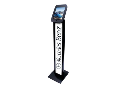 Our BrandMe floor stand allows you to utilize a panel for branding, call to action or custom design to bring attention to your interactive display or kiosk. The tilting mount allows the iPad enclosure to be set in either portrait or landscape mode and the stand base offers additional security features, securing the power source and bolting the unit to the floor.