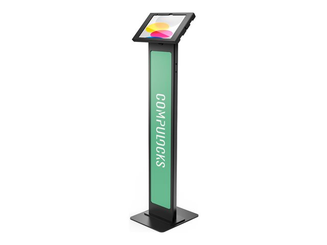 Our BrandMe floor stand allows you to utilize a panel for branding, call to action or custom design to bring attention to your interactive display or kiosk. The tilting mount allows the iPad enclosure to be set in either portrait or landscape mode and the stand base offers additional security features, securing the power source and bolting the unit to the floor.
