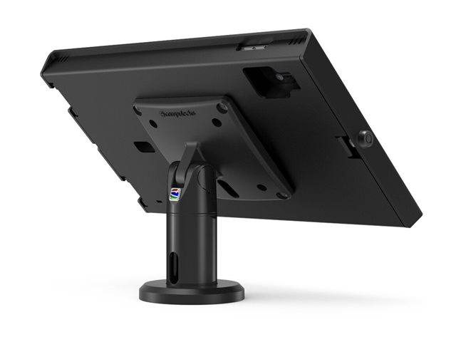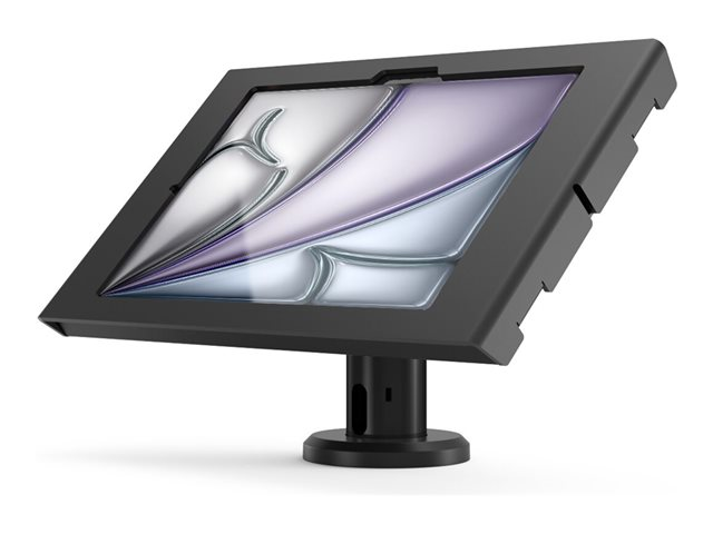 The Compulocks iPad Air M2 & M3 11" Apex Enclosure Tilting Stand offers a solution for securely displaying your tablet. This mounting kit is designed to fit an 11" tablet and features an elegant metal frame that accommodates the device's exposed front and back cameras and sensors, ensuring usability without compromising security. The integrated cable management keeps the workspace tidy while allowing for easy access to connections. Ideal for countertop placement, this stand allows for tilt and flip adjustments, making it versatile for various viewing needs. With a lockable design secured by a key, the enclosure protects the tablet from theft while maintaining a sleek appearance. This assembly offers a blend of functionality and safety, suitable for businesses, schools, or exhibitions.