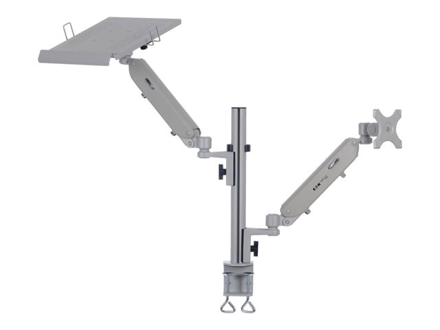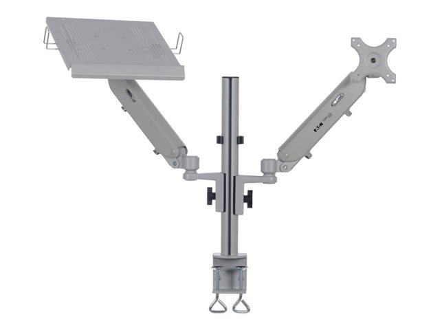 Eaton Tripp Lite Series Full-Motion Desktop Clamp er designet for å forbedre seeropplevelsen din. Enten det gjelder arbeid eller underholdning, gir dette monteringssettet fleksibilitet med 360° rotasjon og 180° svingbarhet, slik at du alltid har den beste plassen i huset. Det er konstruert av aluminium og stål og støtter enheter fra 17" til 32" med en vekt på opptil 6 kg, noe som gjør det til et allsidig alternativ for et bredt spekter av skjermer og bærbare datamaskiner. Det integrerte kabelhåndteringssystemet holder arbeidsområdet ditt ryddig, mens det medfølgende monteringsutstyret sørger for et problemfritt oppsett. Den er sertifisert i henhold til REACH- og RoHS3-standardene og TAA-kompatibel, og er en robust monteringsløsning og et miljøbevisst valg.