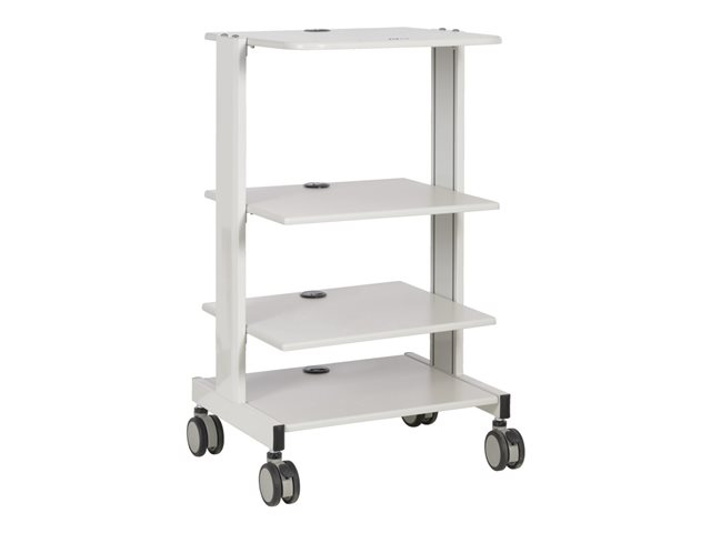 Oppdag en blanding av funksjonalitet og stil med Eaton Tripp Lite Series Mobile Workstation. Denne vognen er designet for profesjonelle som ønsker en pålitelig løsning for AV-utstyret sitt, og kombinerer slitesterk konstruksjon med elegant design. Arbeidsstasjonen er laget av stål og tre av høy kvalitet, noe som sikrer holdbarhet og et profesjonelt utseende. Med fire justerbare hyller og en maksimal lastvekt på 20 kg får den enkelt plass til skjermer, TV-er, bærbare PC-er og skrivere. De fire hjulene med en diameter på 10,2 cm gjør det enkelt å manøvrere, og to bremser sørger for sikker plassering. Det integrerte kabelhåndteringssystemet sørger for orden og ryddighet. Monteringen er enkel, og produktet oppfyller RoHS-standardene og er TAA-kompatibelt, noe som gjør det til et ansvarlig valg i alle miljøer.