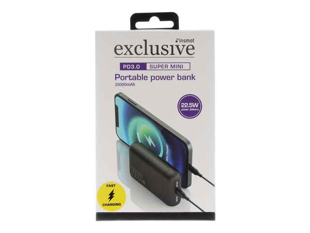 Insmat - Strømbank - 20000 mAh - 22.5 watt - 2 utgangskontakter (USB, 24 pin USB-C)