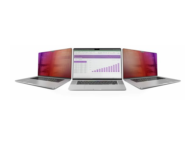 The StarTech.com 14-inch MacBook Pro 21/23 Privacy Screen, Gold Filter w/Enhanced Privacy, is a double-sided screen protector that offers both security and clarity. Designed for the 14" MacBook Pro, this privacy screen ensures your information stays private, with its +/- 30° visible angle making it difficult for onlookers to view your screen from the side. It also reduces blue light exposure by 51%, beneficial for your eye health during prolonged use. The screen is fingerprint-resistant and scratch-resistant, ensuring that your viewing experience remains unobstructed. Installation is straightforward with the included adhesive strip, making it easy to apply and remove without leaving residue. Each package comes with a wiping cloth, allowing for easy maintenance. Whether you're working in a public space or value your privacy, this product offers a solution to keep your information secure while providing benefits of eye comfort and screen protection.