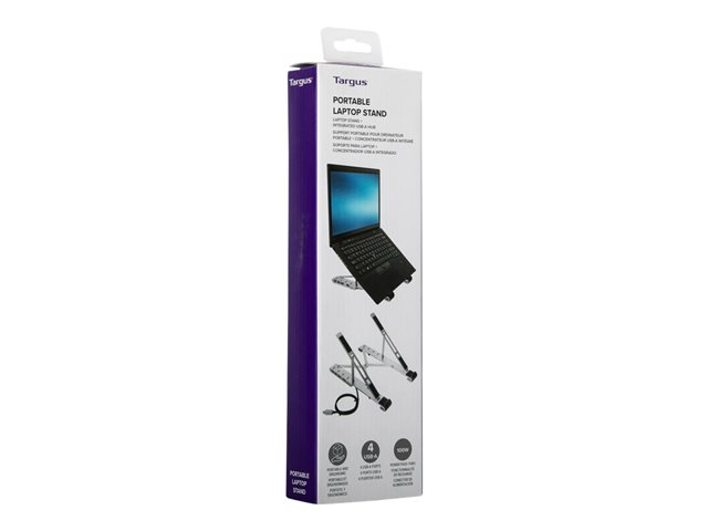 Stylish and durable, this Targus Portable Stand with Integrated USB-A Hub is made with aluminum that is designed to be foldable to an ultra-compact size (25.3 x 6 x 1.83 cm), perfectly stowed within a Targus backpack or laptop case of the modern mobile worker who's looking to transform their laptop into a workstation at multiple workspaces.