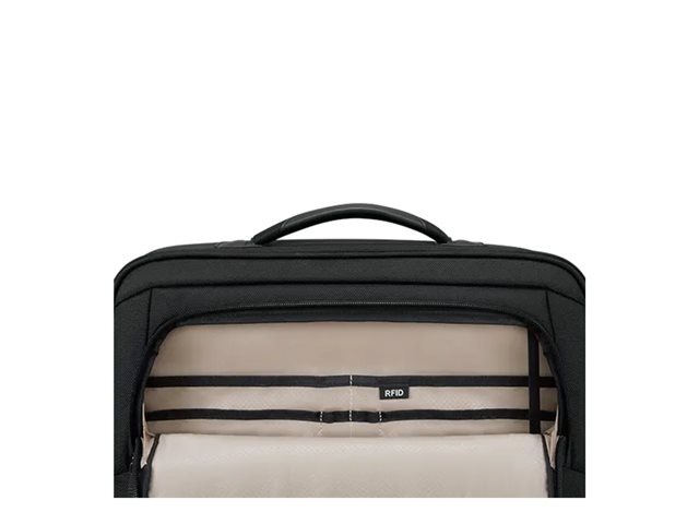 • Main compartment features a full workstation and storage pockets for accessories and other small items, including RFID blocking pocket and key fob