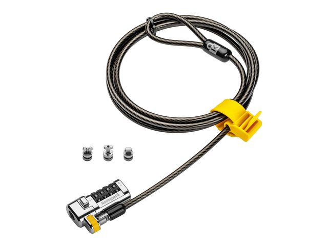 - A 1.8m (6 ft.) carbon steel cable with plastic sheath resists tampering, offers peace-of-mind, and delivers the same level of cut and theft resistance as thicker cables